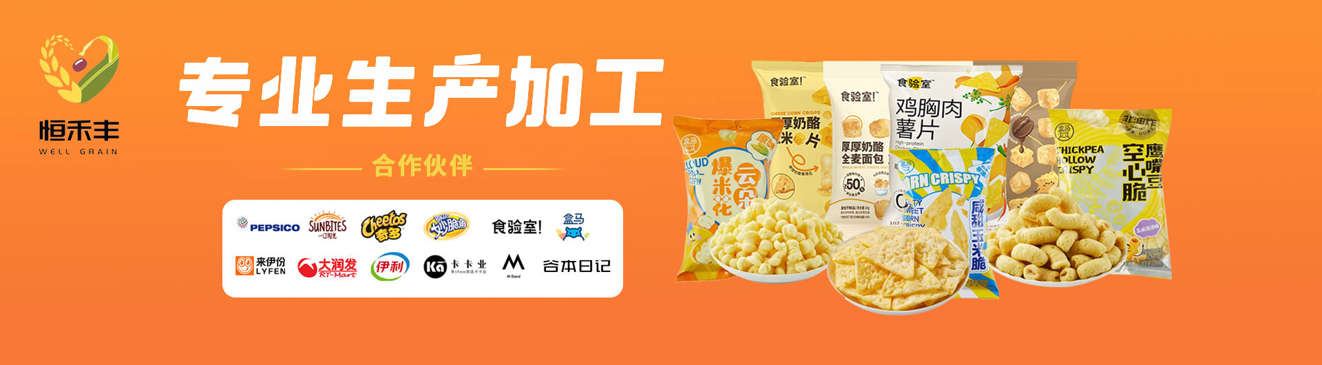 目前,恒禾豐擁有占地75畝的產業(yè)園區(qū),廠房面積約4萬平方米,分為6個生產車間,分期建有13條生產線,并擁有40多臺包裝機,專業(yè)生產加工燕麥片、谷物脆、面包丁、花色米餅、低溫真空膨化奶酪及果蔬、各種油炸和擠出膨化食品。